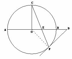 如图,AB是⊙O的直径,C,F是⊙O上的点,OC垂直于直径AB,过F点作⊙O的切线交AB的延长线于D.连结CF交AB于E点.