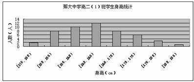 6.我们对那大中学高二(1)班50名学生的身高进行了调查,按区间145--150,150--155,…,180-185(单位:cm)进行分组,得到的分布情况如下图所示,由图可知样本身高在165--170的频率为