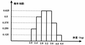 15.某调查机构观察了某地100个新生婴儿的体重,并根据所得数据画出了样本的频率分布直方图如下,则新生婴儿的体重在