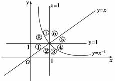 7.幂函数y=x-1及直线y=x,y=1,x=1将平面直角坐标系的第一象限分成八个“卦限”:①、②、③、④、⑤、⑥、⑦、⑧(如下图所示),那么幂函数y=x