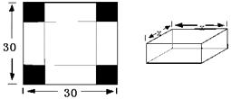 15.在边长为30 cm的正方形纸板的四角剪去相等的正方形,再把它的边沿虚线折起(如下图),做成一个无盖的方底盒子,盒子的底面边长是 cm时,盒子的容积最大。