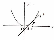 相切于点P(2,1),且与x轴交于点A,O为坐标原点,定点B的坐标为(2,0)。![]()