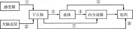 D.图中感受器、①、下丘脑、⑦、内分泌腺五者可以构成一个反射弧