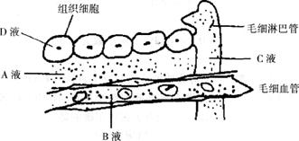 B.A液体中CO2的浓度比D液中高,O2浓度比D细胞中低