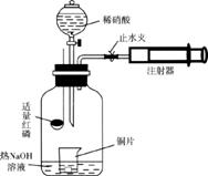 (2)操作步骤有:①关闭止水夹;②点燃红磷,伸入瓶中,塞好胶塞;③向广口瓶内注入足量热NaOH溶液;④待红磷充分燃烧,一段时间后打开旋塞,向烧杯中滴入少量稀硝酸;⑤将注射器中空气压入;⑥将盛有Cu片的小烧杯放入瓶中;⑦打开止水夹。正确的操作顺序是_________________________________。