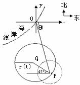 方向300km的海面P处,并以20km/h的速度向西偏北 方向移动,台风侵袭的范围为圆形区域,当前半径为60km,并以10km/h的速度不断增大,问几小时后该城市开始受到台风的侵袭?![]()