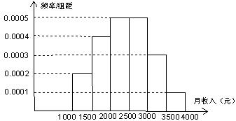 16.一个社会调查机构就某地居民的月收入调查了10000人,并根据所得数据画了样本的频率分布直方图(如下图)。为了分析居民的收入与年龄、学历、职业等方面的关系,要从这10000人中再用分层抽样方法抽出100人作进一步调查,则在