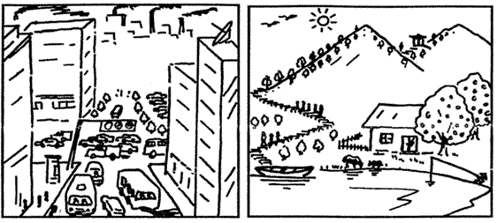 假设你是一位生活在某城市的中学生.暑假打算去乡村度假.请根据下面两幅图提供