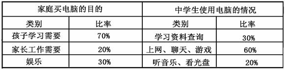 据调查,中国城市居民电脑的拥有率达30%。很多农村居民对电脑也越来越感兴趣,有的家庭也买了电脑。请参考下表写一篇题为“Computers in China”的短文。词数为120词左右。