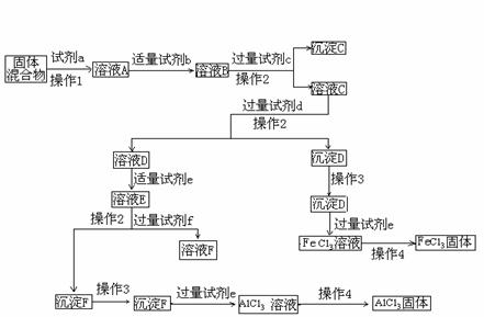 (14分)固体AlCl3和FeCl3混合物中含有少量FeCl2和Al2(SO4)3。某同学设计如下实验进行分离,以分别得到纯净的AlCl3和FeCl3固体。