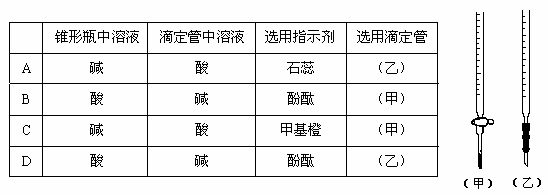 12.用已知浓度的NaOH溶液测定某H2SO4溶液的浓度,参考右图,从下表中选出正确选项