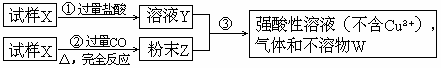 (2)若全部的溶液Y和全部的粉末Z充分反应后,生成的不溶物W的质量是m,则每份试样X中氧化铜的质量为_____________.(用m表示)