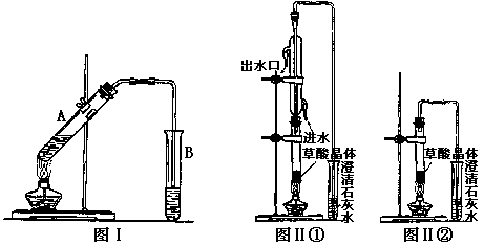 利用图Ⅱ①和图Ⅱ②加热草酸晶体,以验证草酸受热是否分解。连续加热一段时间后的现象是:图Ⅱ①:试管里澄清石灰水先变浑浊,后又变澄清,其原因是 ;图Ⅱ②:试管里澄清石灰水只变浑浊,其原因是 ;能验证草酸受热分解的装置是 (填图Ⅱ中的编号“①”或“②”),理由是: (从装置的特点分析)。