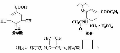 22.(8分)禽流感在全球的蔓延,使人们谈“禽”色变。从香料八角中提取的莽草酸是合成治疗禽流感的药物--达菲(Tamiflu)的原料之一,达菲是抗禽流感病毒特效药物。