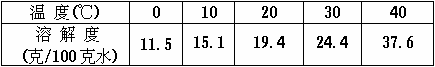 20.已知某盐在不同温度下的溶解度如右表.若把质量百分比浓度为22%的该盐溶液由50℃逐渐冷却,则开始析出晶体的温度范围是 [ ].