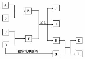 产物J是含A金属元素的胶状白色沉淀,I为NaCl溶液,D是淡黄色固体单质。试填写下列空白: