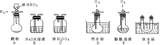 23、(13分)某校研究性学习小组选择使用下列仪器和药品,验证由铜和适量浓硝酸反应产生的气体中含有NO(实验中使用的N2和O2的用量可自由控制)。已知:①NO + NO2 + 2OH- = 2NO2- + H2O;②气体液化温度:NO2:21℃、NO:-152℃