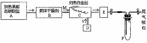 上图中“→”表示所体流向,M是一种纯净而干燥的气体,Y为另一种气体,E内有棕色产生,实验所用的物质,只能由下列物质中选取: