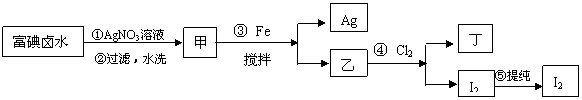28、在已经提取氯化钠、溴、镁等化学物质的富碘卤水中,采用下面的工艺流程生产单质碘: