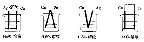 16.下列烧杯中盛放的都是稀硫酸,在铜电极上能产生大量气泡的是 ( )