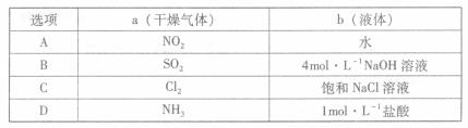 (4)在如图装置中,假设烧瓶中充满干燥气体a,滴管中充有液体b,按上述操作引发喷泉,烧杯中的液体b最终几乎充满烧瓶。则符合条件的选项是____(填写相应的序号)。
