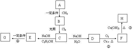 (3)碳烯与烃A反应,生成烃B,一定量的B完全燃烧生成8.8gCO2和4.5gH2O,B分子中含有3个-CH3,且能完成下列转化关系;