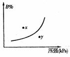 反应mA(固)+nB(g) pC(g),△H<0,在一定温度下,平衡时B的体积分数(B%)与压强变化的关系如图所示,下列叙述中一定正确的是