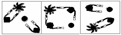 两对舞伴会暂时组合起来,手拉手跳起四人舞蹈。随后它们“交换舞伴”,组合成两个