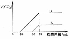 (14分)取等物质的量浓度的NaOH溶液两份A和B,每份50mL。向其中各通入一定量的CO2,然后,各取溶液10mL,分别将其稀释为100mL,分别向稀释后的溶液中逐滴加入0.1mol/L的盐酸。标准状况下,产生CO2气体体积与所加盐酸体积之间的关系如图所示。试回答下列问题: