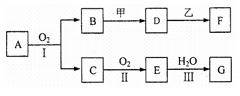 (2)若甲为淡黄色固体,D、F的溶液均呈碱性,用两根玻璃棒分别蘸取A、G的浓溶液并使它们接近,有大量白烟生成。则