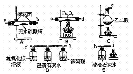 该组同学依据上表设计了一套如下图所示的实验装置,欲通过实验验证草酸受热分解的产物,并利用反应产生的CO气体来还原铁的某种氧化物(FexOy),以确定FexOy的组成。