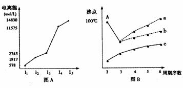 II.图B是研究部分元素的氢化物的沸点变化规律的图像,折线c可以表达出第 族元素氢化物的沸点的变化规律。不同同学对某主族元素氢化物的沸点的变化趋势画出了两条折线--折线a和折线b,你认为正确的是: ,理由是: 。
