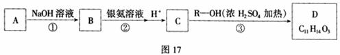 25.(15分)已知化合物A的相对分子质量为182.5,其分子组成可以表示为CxHyOcl。有关转化关系如图17所示:
