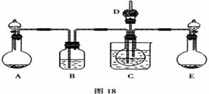 (1)某校学生实验小组利用上述反应原理,设计如图18所示装置,制取碳酸氢钠晶体。C烧杯中盛有冰水,D中装有蘸稀硫酸的脱脂棉,图18中夹持装置已略去。