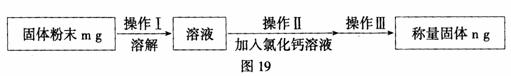 (2)该小组同学为了测定C中所得晶体的碳酸氢钠的纯度(假设晶体中不含碳酸盐杂质),将晶体充分干燥后,称量质量为wg。再将晶体加热到质量不再变化时,称量所得粉末质量为mg。然后进行如图19所示实验: