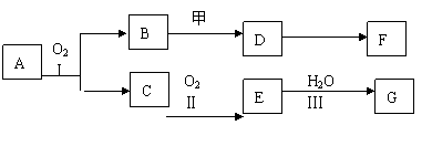 (1)若用两根玻璃棒分别蘸取A、G的浓溶液并使它们接近,有大量白烟生成;甲为一种淡黄色固体,D、F的溶液均呈碱性。则