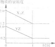 D.该反应在某温度下,YZ、X2Z的物质的量浓度与时间的关系如下图所示,据此可计算得YZ的转化率为80%