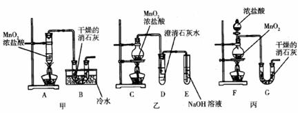 (1)请从甲、乙、丙各套装置中选取合理的部分,按气体从左至右的流向组装成一套较合理的装置(填各部分仪器的字母编号) 。