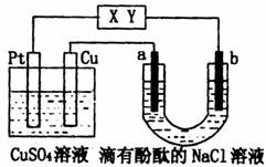 8.如图所示,a、b是石墨电极,通电一段时间后,b极附近溶液显红色。下列说法正确的是 ( )
