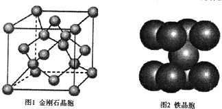 (4)在金刚石晶体的一个晶胞(如图1)中,含有 个碳原于。在二氧化硅晶体的一个晶胞中,含有 个化学键。原子晶体能否形成最密堆积结构,原因是__ _