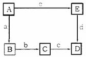 已知B是常见的两性氧化物,常温下,C溶液pH<7,E溶液pH>7;a、b、c、d、e分别代表实验上述转化的反应物,它们分别属于单质、氧化物、气态氢化物、酸、碱中的一种(但这不是按照abcde的顺序排列的)。
