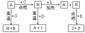 27.(9分)A、B、C、D、E、F是常见单质,其中A是用量最大,应用最广泛的金属;元素D是地壳中含量最多的金属元素;D元素和E元素在周期表中相邻。G、H、I、J、K、L是常见化合物,其中G在常温下是无色液体,H是黑色晶体。以上物质相互间的转化关系如下图所示: