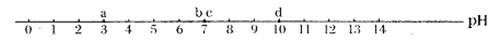 2.某同学效游不慎被蜜蜂蛰伤,已知蜜蜂蛰人时分泌的液体是酸性的。该同学随身携带的物品有苹果汁、牛奶、矿泉水和香皂等,其pH分别为a、b、c、d(如图所示,d为香皂水的pH),为了减轻蛰伤处的疼痛,应涂沫 ( )