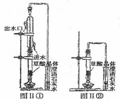利用图II①和图II②加热草酸晶体,以验证草酸受热是否分解。连续加热一段时间后的现象是:图II①:试管里澄清石灰水变浑浊后,又变澄清,其原因是