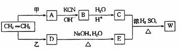 R-CN+2H2O+H+→R-COOH+NH4+,以乙烯为原料经过下图所示的反应可制取有机物