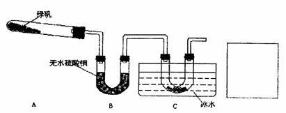 ③乙同学为了验证绿矾受热分解的所有产物,在C装置后连接了一个装置,并选用了合适的药品不仅达到了实验目的的而且还起到了一举两得的效果。请你在C装置后的方框中画出该装置,并注明选用的药品。