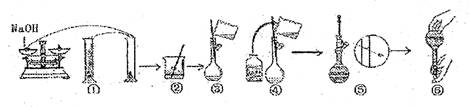 (3)观察配制NaOH溶液的过程示意图,指出其中有错误的是(填操作序号)。在①-⑥中,没有体现出来的一个重要步骤是: 。
