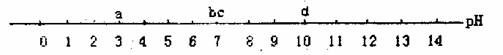 3.某同学效游不慎被蜜蜂蛰伤,已知蜜蜂蛰人时分泌的液体是酸性的。该同学随身携带的物品有苹果汁、牛奶、矿泉水和香皂等,其pH分别为a、b、c、d(如图所示,d为香皂水的pH),为了减轻蛰伤处的疼痛,应涂抹 ( )