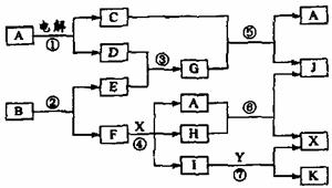 27.(8分)下图中,A是一种无色液体,G是极易溶于水的碱性气体,Y是胃酸的主要成分,K是不溶于稀硝酸的白色沉淀,反应⑤是工业制X的主要反应之一,C、D、E、F都是单质。