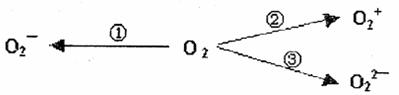 (2)制备含O-2、O2-2甚至O+2的化合物都是可能的,通常它们在氧分子进行下列各种反应时生成的:
